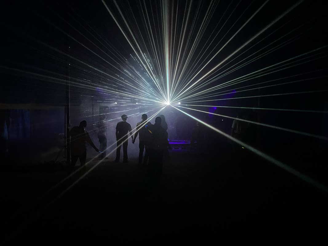 - Tack vare den speciella optiken och strålgången uppnår denna enhet laserklass 3R, dvs. den kräver varken en nyckelbrytare eller ett nödstopp och kan monteras var som helst, i automatiskt läge eller via DMX-styrning.
